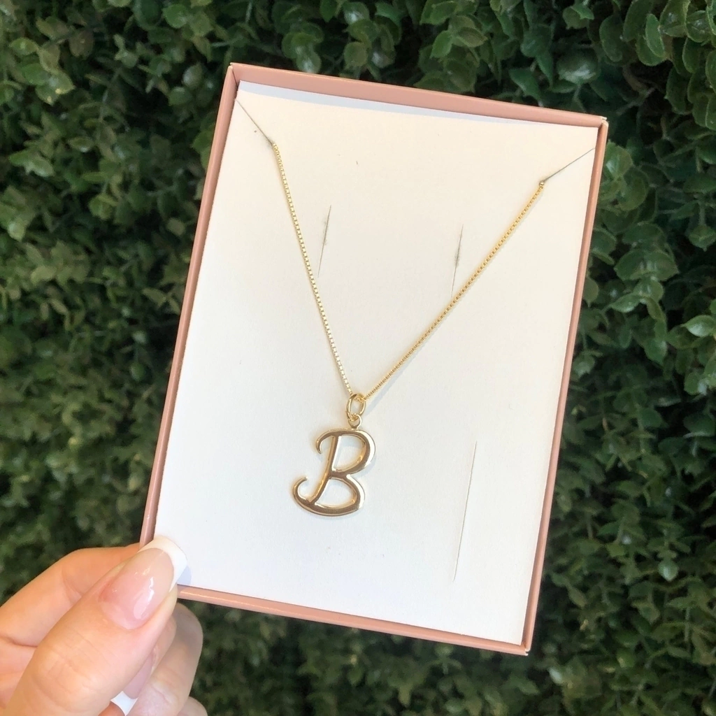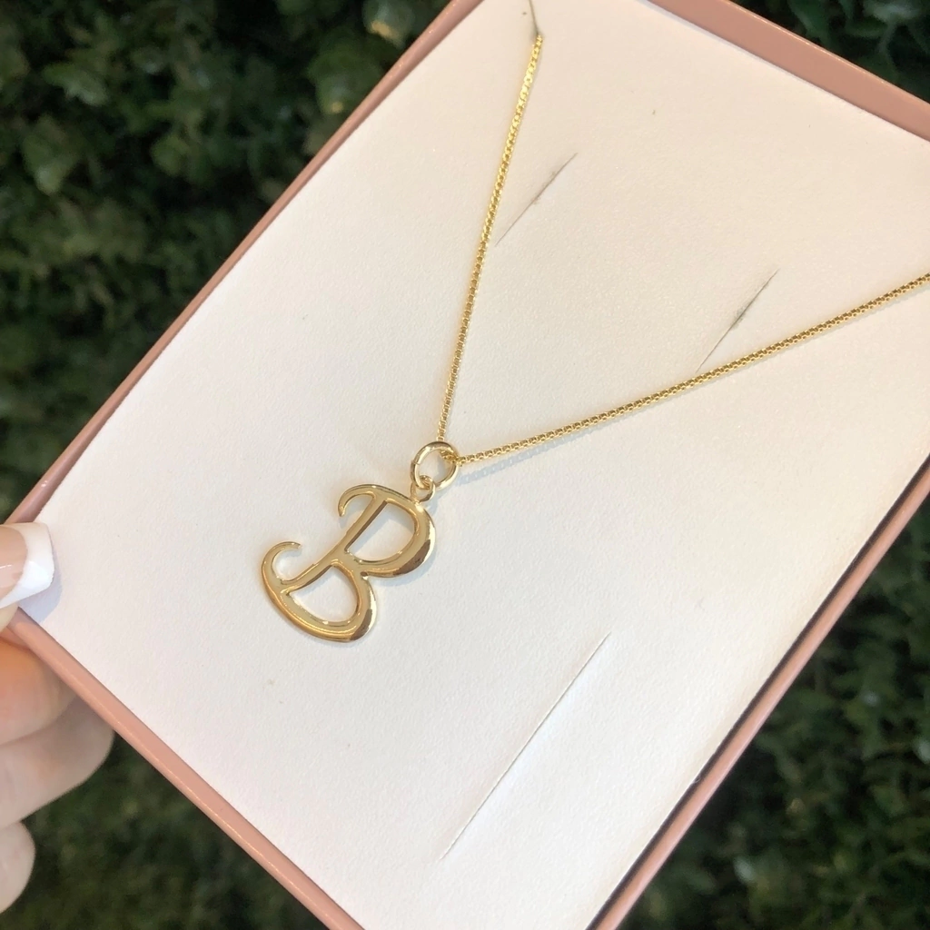 Colar Letra Cursiva com Banho em Ouro 18k.