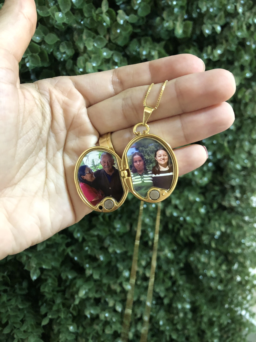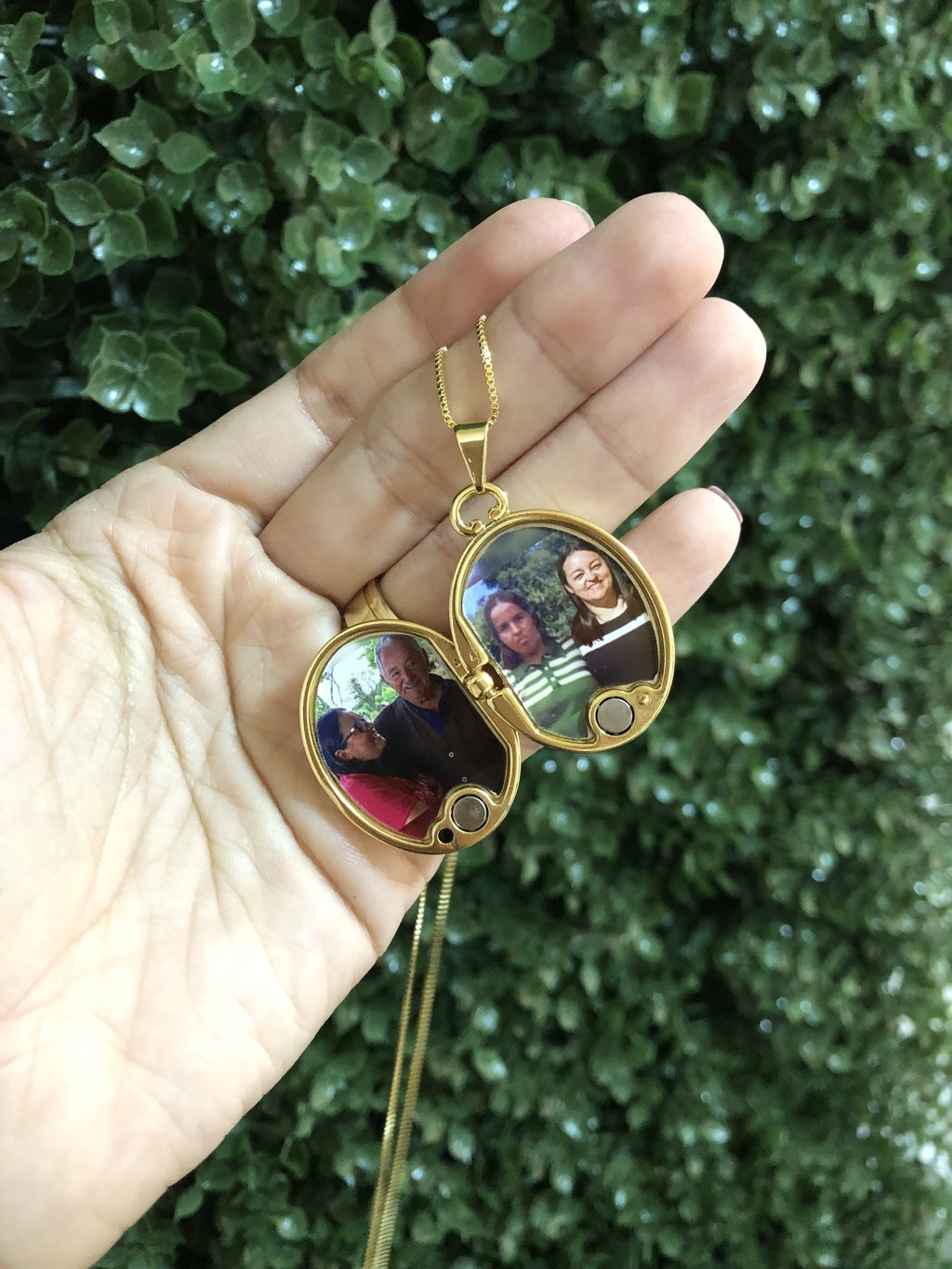 Antes de finalizar sua compra existe um campo onde você vai carregar as 2 fotos do seu relicário.
